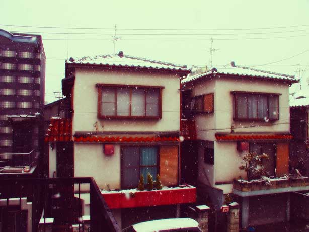 都会に舞い降りて、街灯の明かりで浮かび上がる雪はとても綺麗でした。