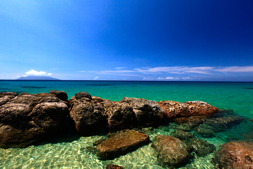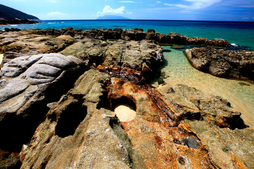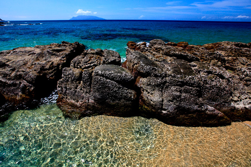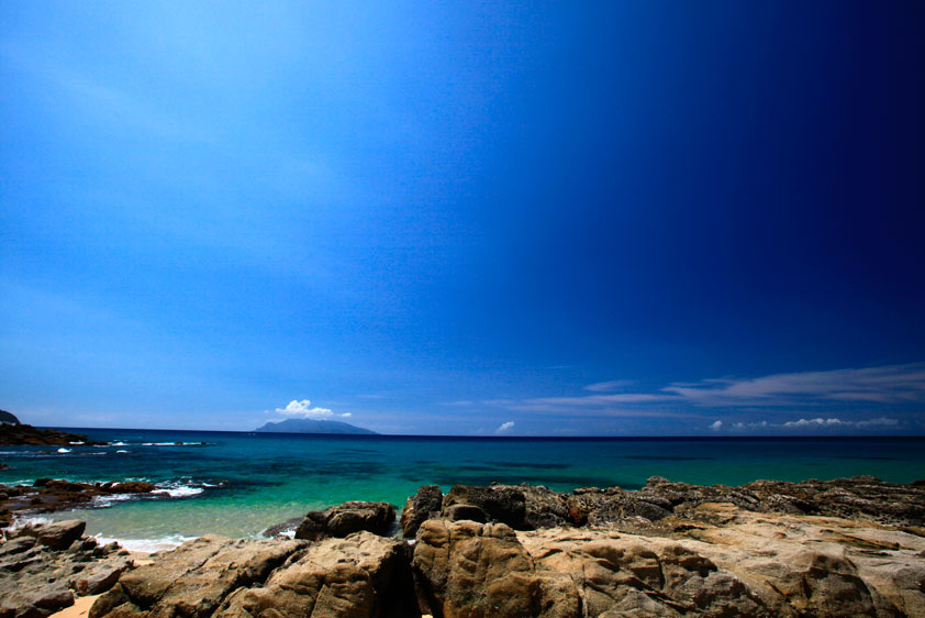 本当は波打ち際を写したかったのですが、引き潮だったので、岩がむき出しになっていました。