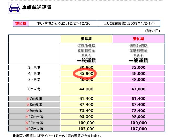 大阪〜志布志(鹿児島)の『さんふらわあ』の値上げのすごいことすごいこと。