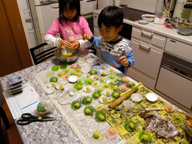 今日は3時のおやつに芋をこねくり回して何やら作ってます。