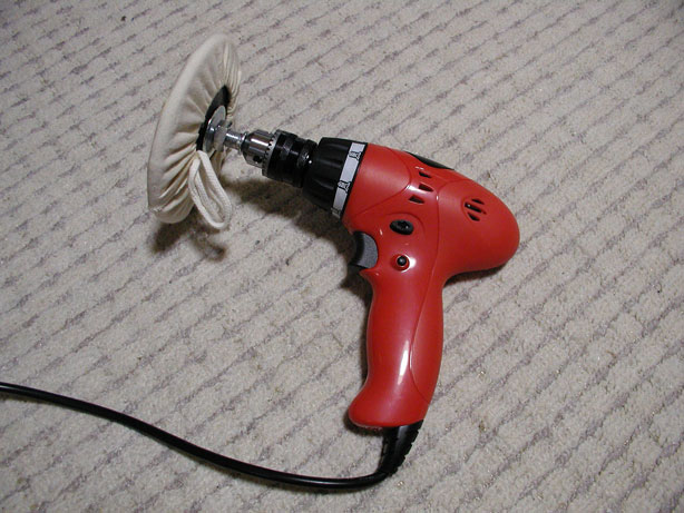 ネジを締めるときに使う電気ドリルなのですが、チャックに車のワックスがけとかに使う布を付けてみました。