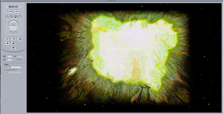 『動く絵画』に手を加える前に、注文した外付け2TBハードディスクもまだ届かないことだし、絵本『森の中で・・・』を、アトリエ内で見ることができるよう、ハイビジョン画質で再編集してました。